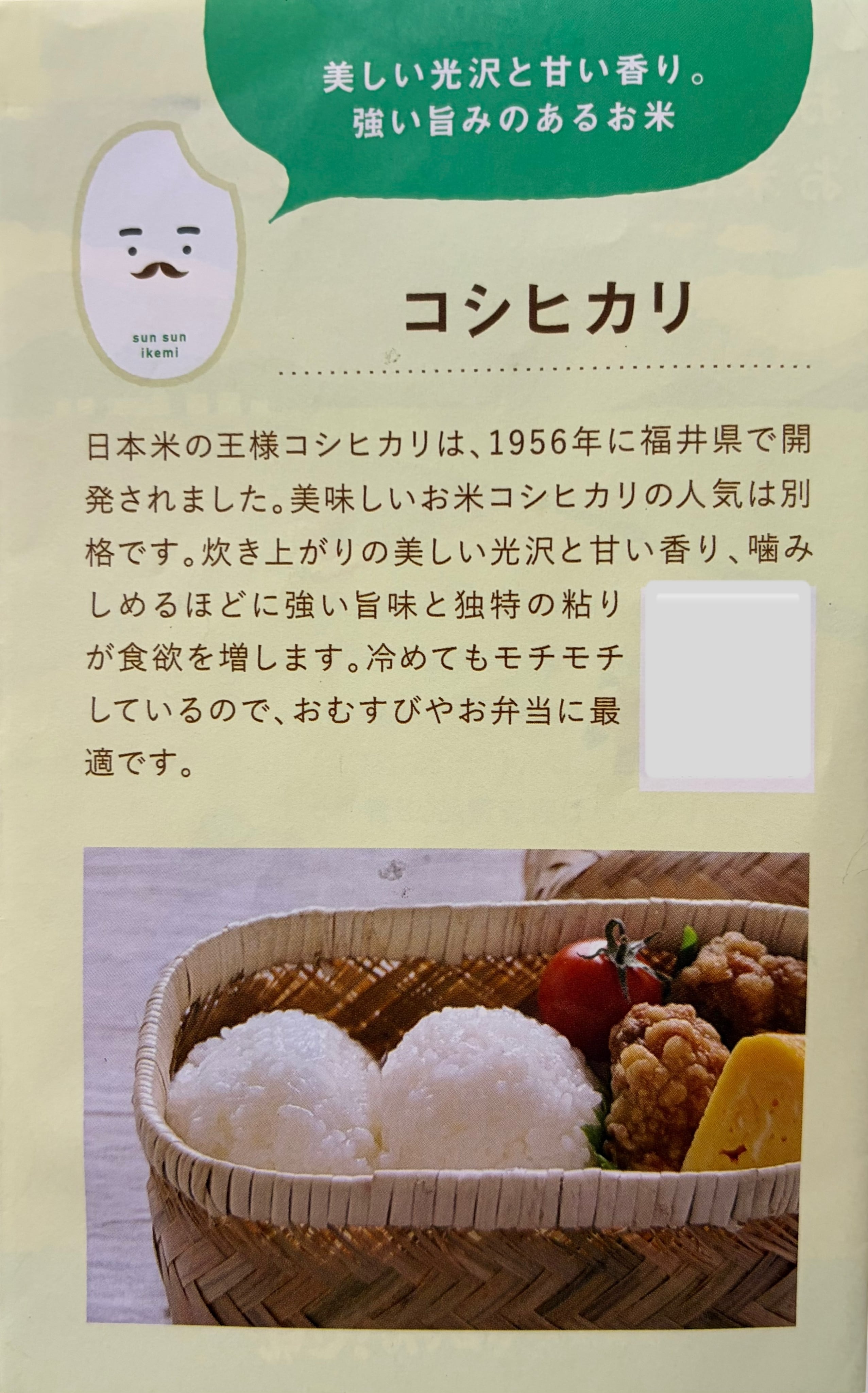 冷めてもモチモチしているので、おむすびやお弁当に最適です。