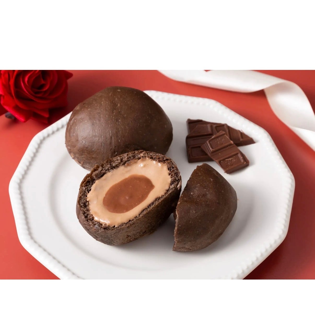 「バレンタインギフト」にラインナップの「くりーむパン 濃厚ショコラ」は、リッチなダブルチョコレートクリームが味わえる数量限定のくりーむパンです。ふんわりとしたブラックココア生地に、チョコレートクリームと生チョコレートのショコラクリーム入りの贅沢な味わいをお楽しみいただけます。