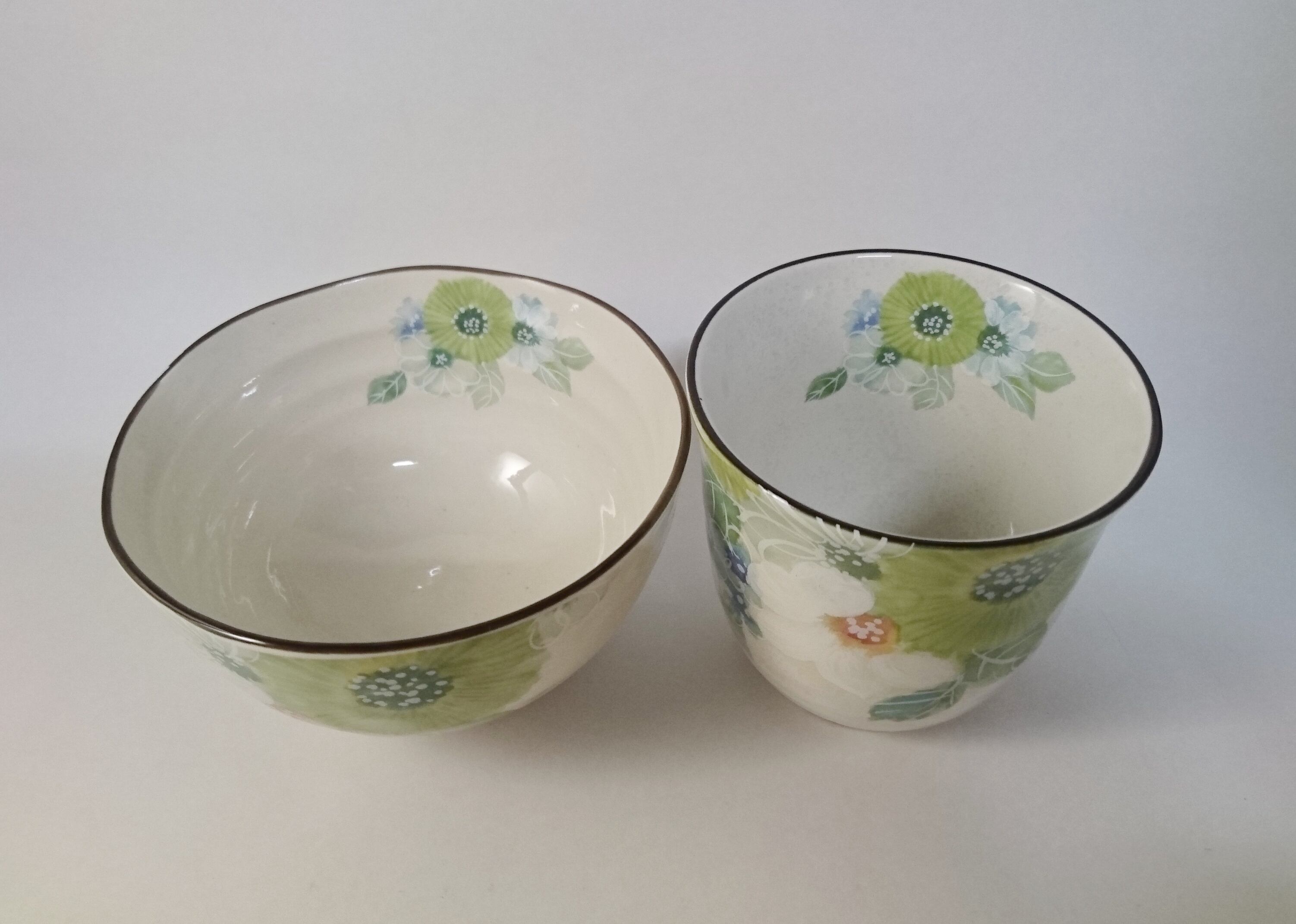 百花繚乱 飯椀湯飲 グリーン(ハンカチ・箸付)
